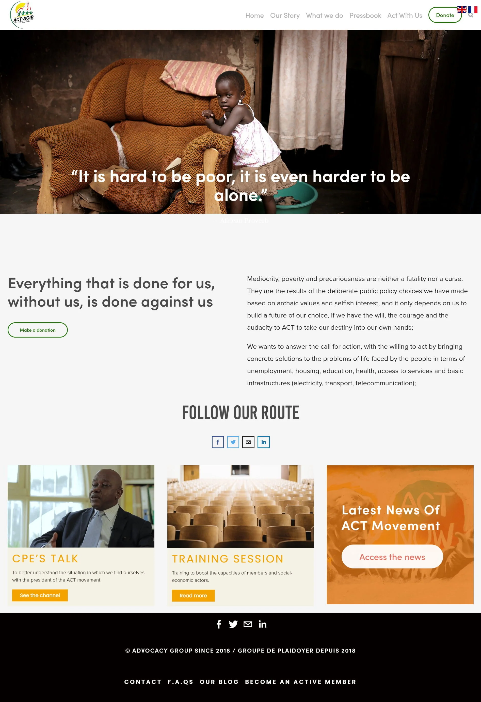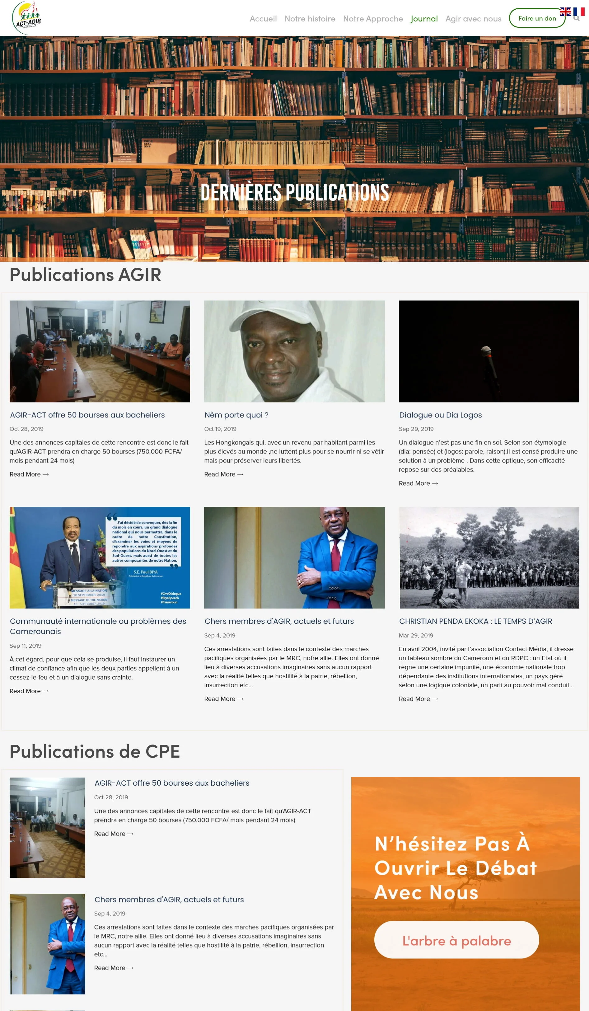 ACT-AGIR is an advocacy, group which choose to take action by providing solutions to problems of life faced by people concerning unemployment, housing, education, health, access to basic infrastructure services (electricity, transport, telecommunications).