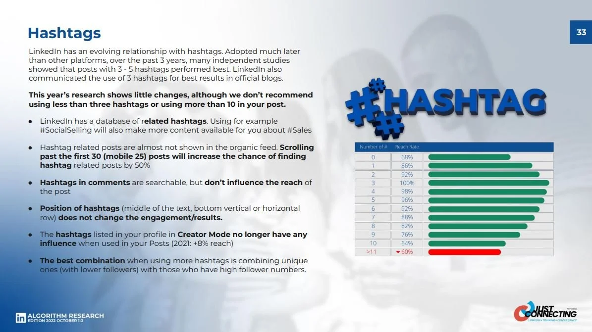 Use hashtags while limiting yourself to a maximum of 10 hashtags,