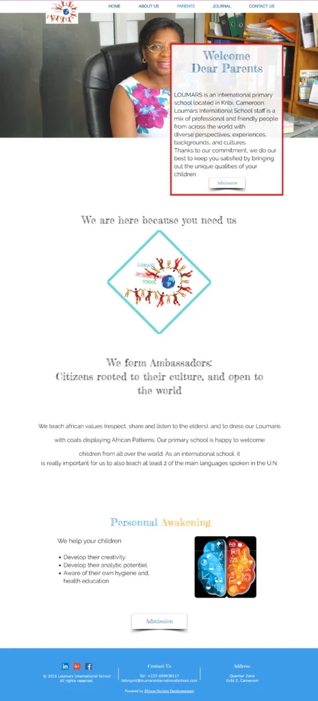 Located in Kribi (Cameroon), LOUMARS International School outsourced part of its marketing. In this project, we were required to develop a website and marketing strategies (offline and online).