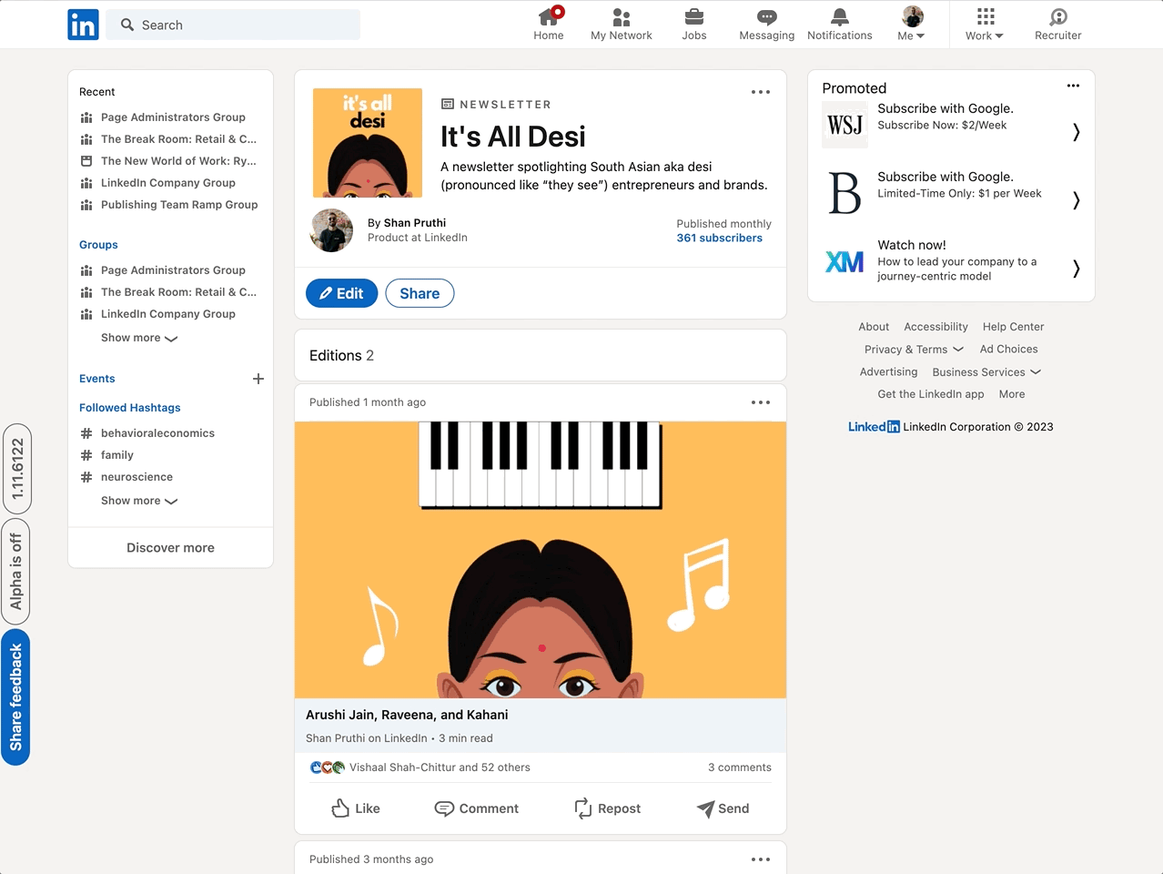 • One-click Newsletter subscribe link: To help newsletter authors find the right audience, LinkedIn made it even easier for you to share and drive subscriptions with a one-click subscribe URL and an embeddable button. With just a click, existing and potential readers can subscribe to your newsletter directly from LinkedIn or anywhere else you choose to share the link on social, email or web channels. This feature is designed to help you grow your subscribers and make it easy for followers to stay up to date with the latest insights and updates.