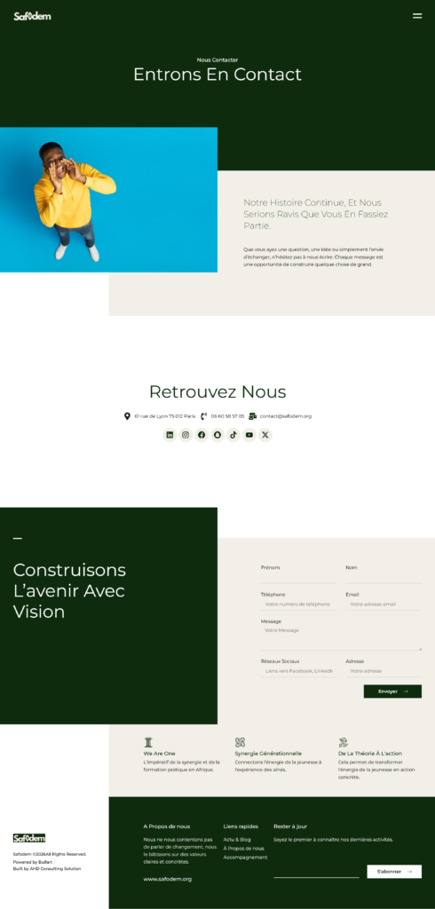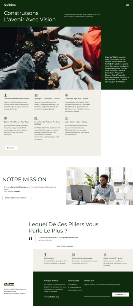 Safodem empower African entrepreneurs with innovation, resilience, and purpose. Last month, they contacted us to help them reach specific goals : Create an informative website.